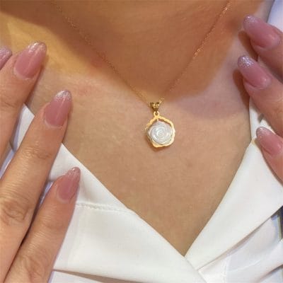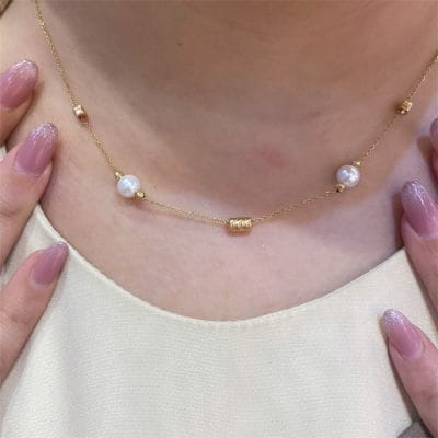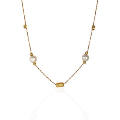 گردنبند طلا ترکیب مروارید و گوی البرنادو