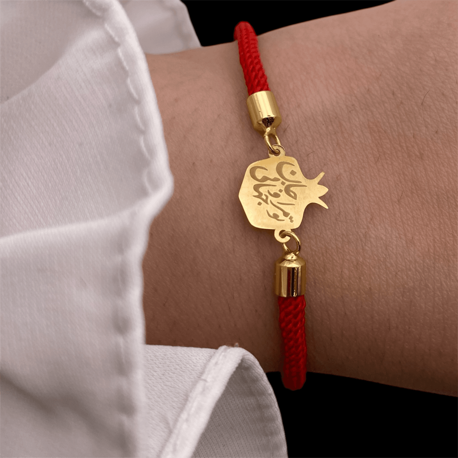 دستبند زنانه طلا 18 عیار طرح پلاک :انار