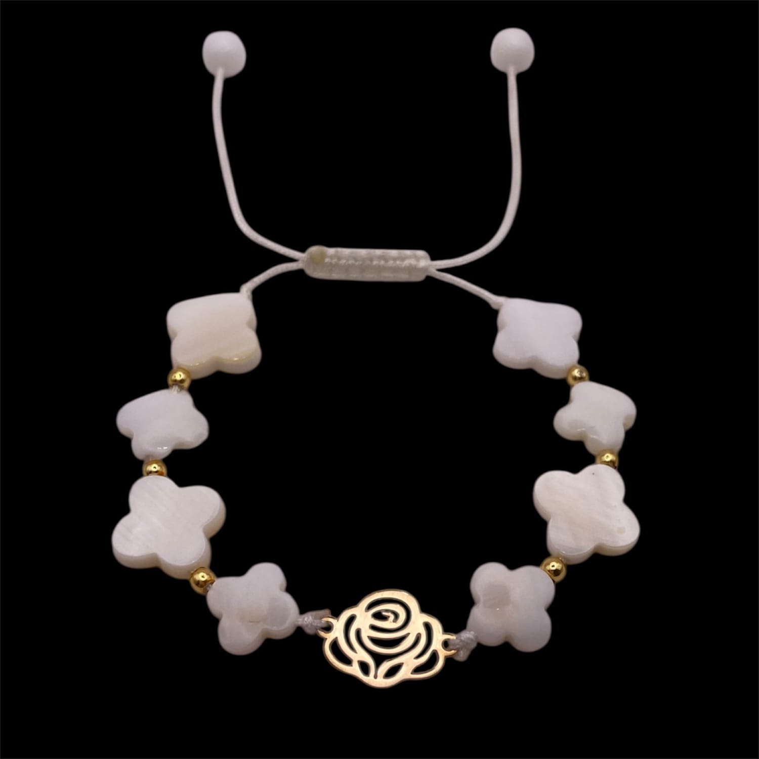 دستبند طلا 18 عیار زنانه بند صدفی طرح پلاک :گل