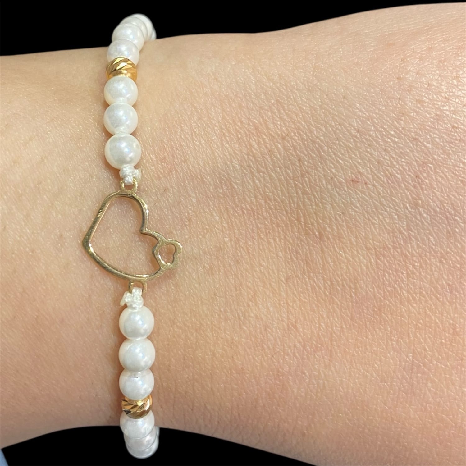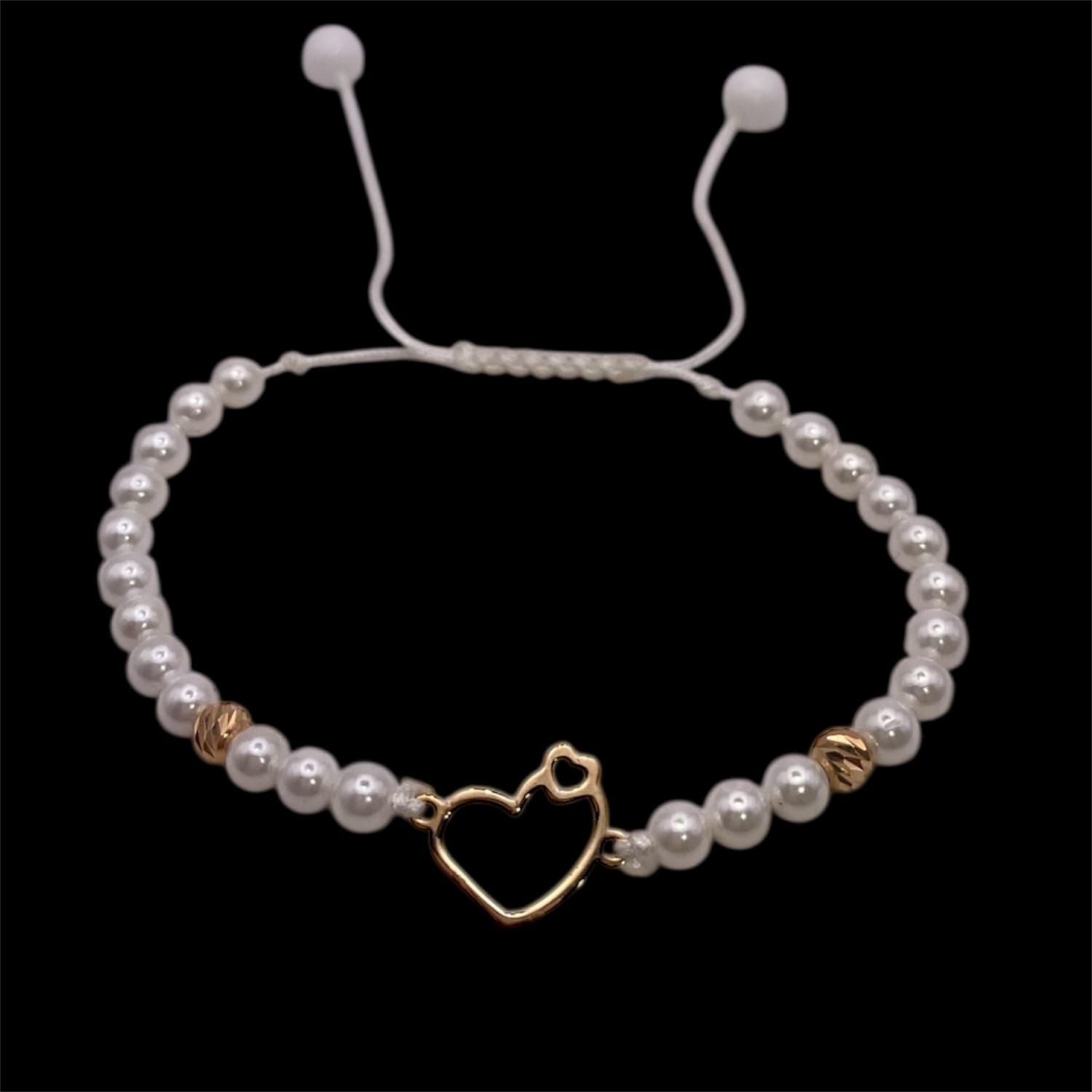 دستبند طلا 18 عیار زنانه بند مرواریدی طرح قلب