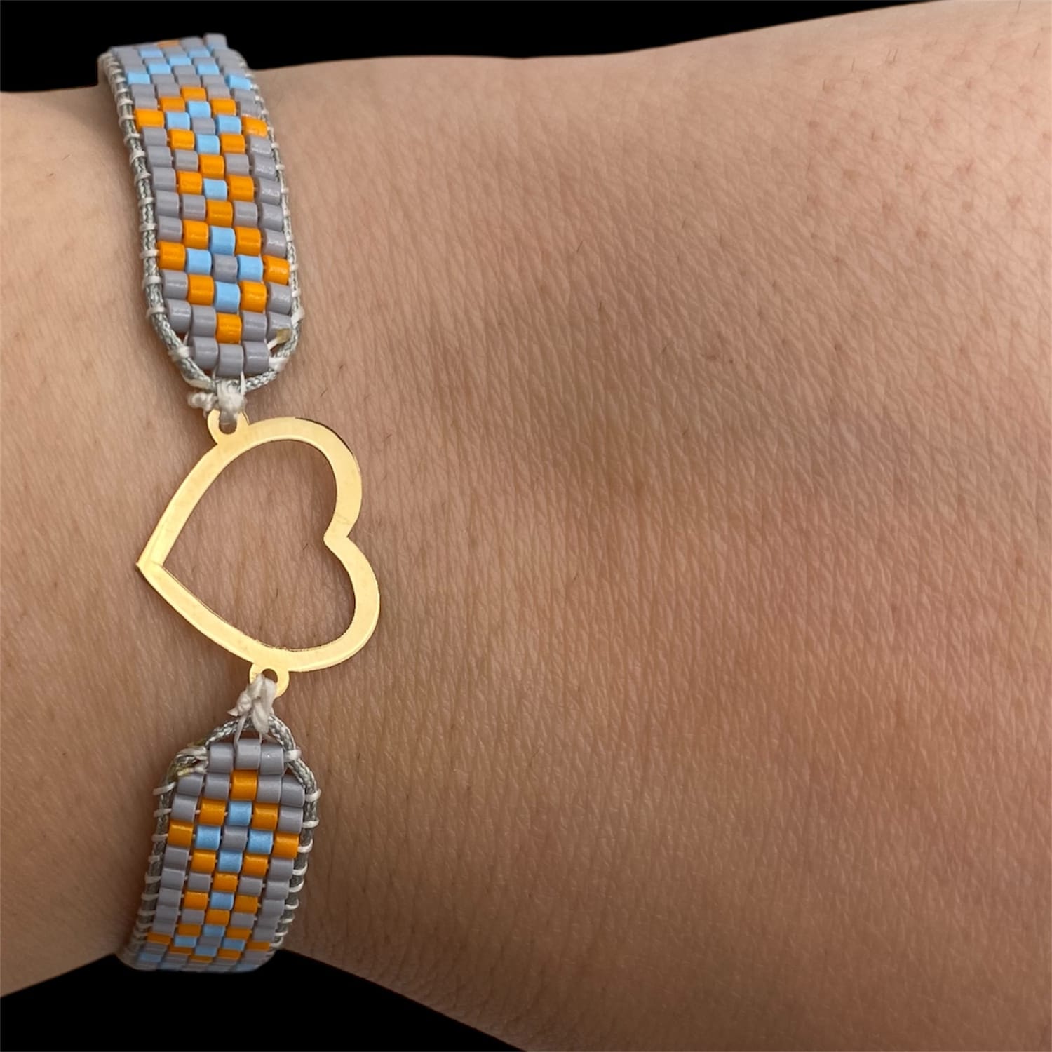 دستبند طلا زنانه 18 عیار بند میوکی طرح پلاک : قلب