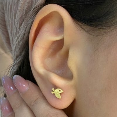 گوشواره میخی طلا 18 عیار طرح پرنده